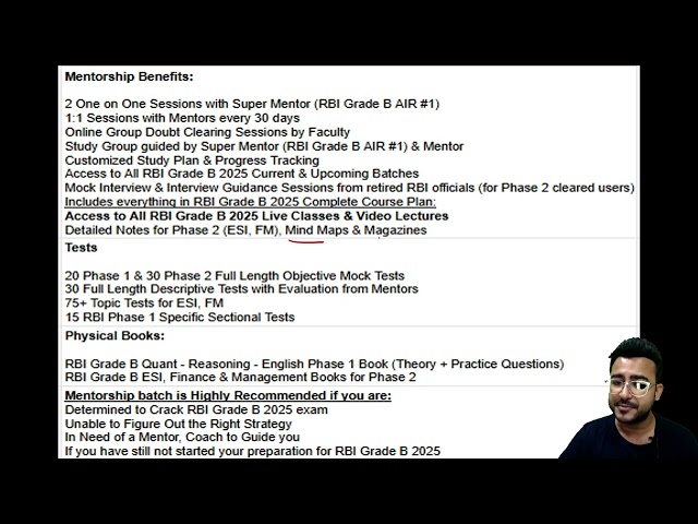 • All-Course Access Access to All Current & Upcoming Batches for RBI Grade B 2025 which includes Live Classes, Notes & Mock Tests