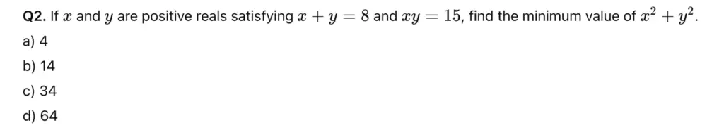 Q13. The average of 8 numbers is 25. If one number is replaced by 45, the new average becomes 27. Which number was replaced?