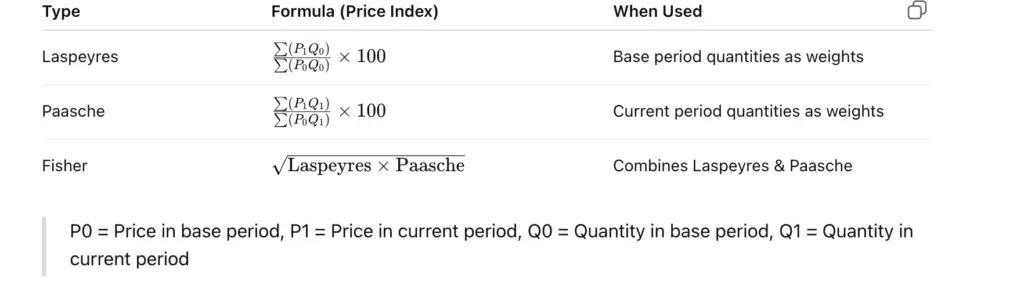 - Weighted Index Numbers: Items are given different weights based on importance.