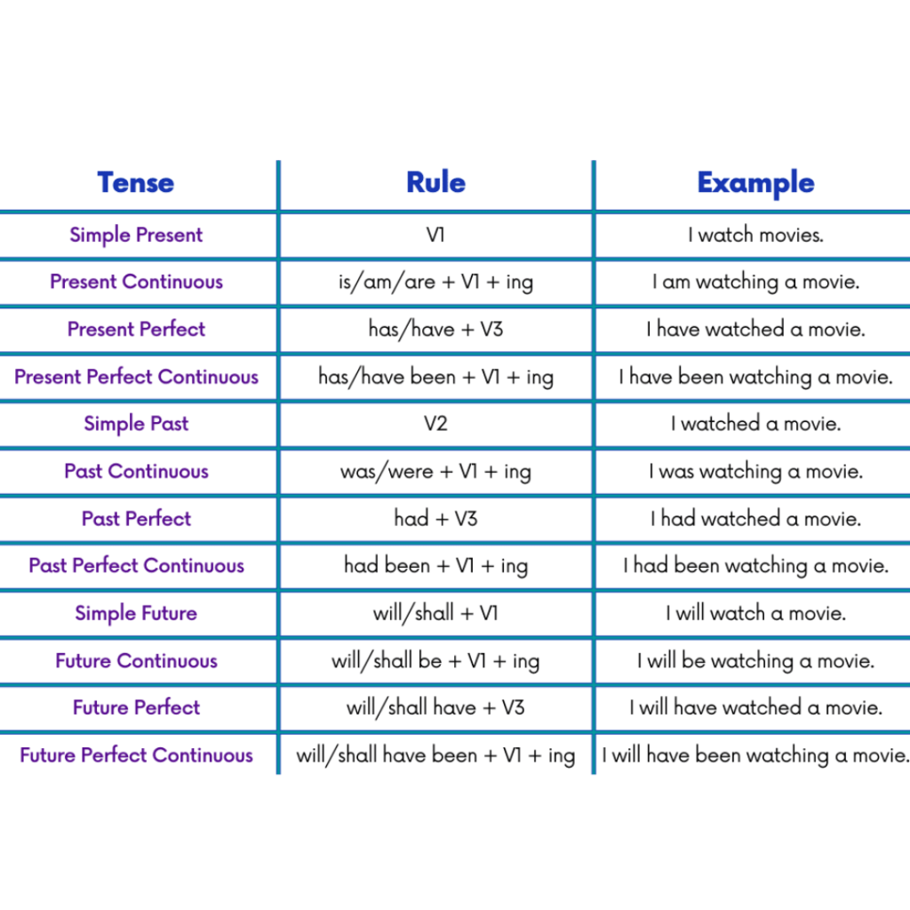 Tenses Rules Chart with Examples in English