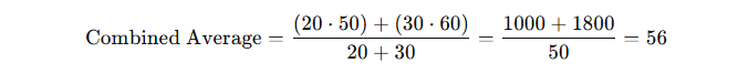 | Combined Average | Average of two or more groups combined | Average of two classes of students |