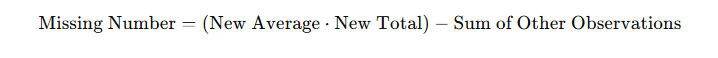 Missing Number = (New Average×New Total) − Sum of Other Observations