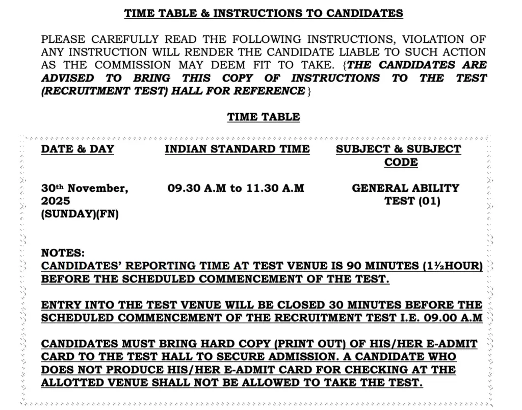 - Candidates must preserve the printed hall ticket until the final selection process is completed.