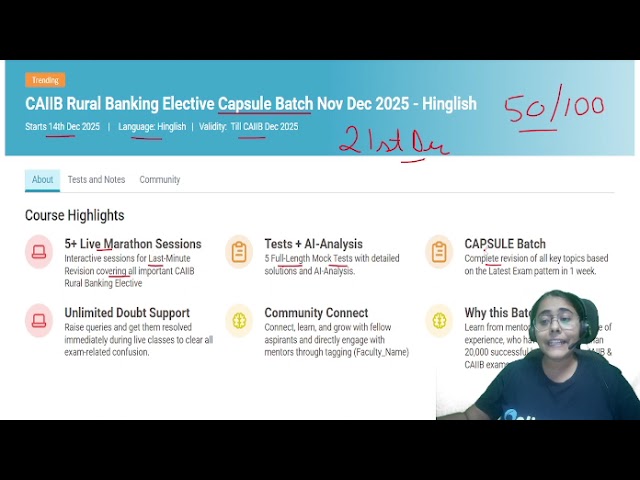 • 5+ Live Marathon Sessions Interactive sessions for Last-Minute Revision covering all important CAIIB Rural Banking Elective