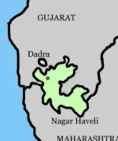 दादरा और नगर हवेली तथा दमन और दीव केंद्र शासित प्रदेश का मानचित्र, जिसमें दमन, दीव के स्थान तथा उनकी भौगोलिक स्थिति दर्शाई गई है।