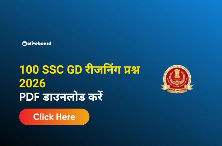 एसएससी जीडी कांस्टेबल परीक्षा 2026 की तैयारी तब आसान हो जाती है जब आपकी रीजनिंग की तैयारी मजबूत हो। उम्मीदवारों को बेहतर अभ्यास में मदद करने के लिए, हमने 100 महत्वपूर्ण एसएससी जीडी रीजनिंग प्रश्न 2026 (SSC GD Reasoning Questions 2026) प्रदान किए हैं जो नवीनतम परीक्षा पैटर्न पर आधारित हैं। ये प्रश्न उन विषयों से चुने गए हैं जो परीक्षा में बार-बार पूछे जाते हैं। आप अभ्यास के लिए पीडीएफ (PDF) मुफ्त में डाउनलोड कर सकते हैं और परीक्षा से पहले किसी भी समय अभ्यास करने और त्वरित पुनरीक्षण (रिवीजन) करने के लिए इसके अंदर एक मुफ्त ई-बुक भी प्राप्त कर सकते हैं।