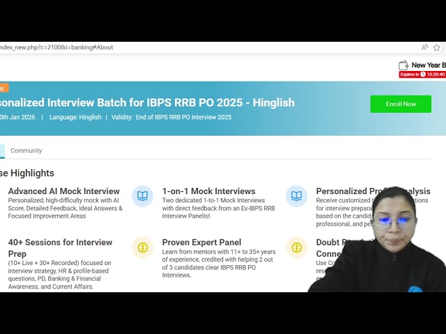 • 1-on-1 Mock Interviews Two dedicated "1-to-1" Mock Interviews with direct feedback from an Ex-IBPS RRB Interview Panelist