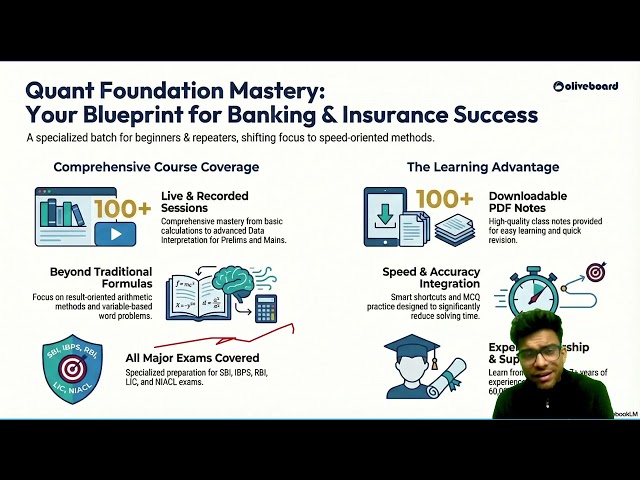 • Full Syllabus Mastery 100+ Live & Recorded Sessions covering everything from Basic Calculation to Advanced DI for all Banking & Insurance exams.