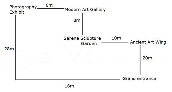 So, the shortest distance between the Grand Entrance to the Photography Exhibit is given by: