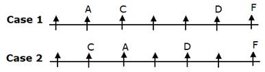 Either three or four persons sit between A and F, who does not sit second from any end of the row.