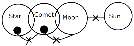 All Comet can never be Sun: Only a few Comet is Moon means some Comet is Moon and some Comet is not Moon. No Moon is Sun. Thus, the Comet which is Moon can never be Sun. So, All Comet can never be Sun. So, conclusion II is true.