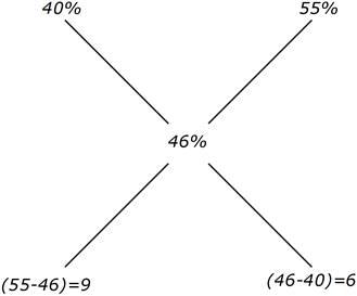 In what ratio must Rice costing Rs 40/kg be mixed with Rice costing Rs 55/kg, such that if the mixture is sold at Rs 57.5/kg, it yields a percentage profit of 25%?
