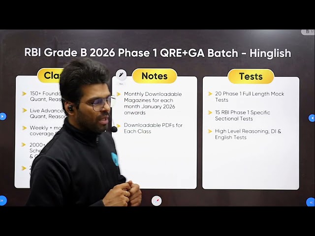 RBI Grade B 2026 Phase 1 QRE+GA Batch - Hinglish