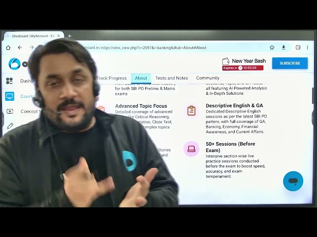 • Descriptive English & GA Dedicated Descriptive English sessions as per the latest SBI PO pattern, with full coverage of GA, Banking, Economy, Financial Awareness, and Current Affairs.